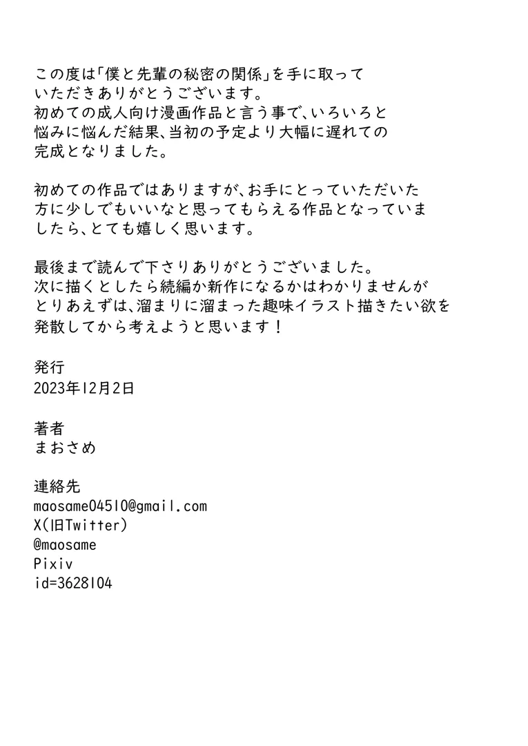 (同人誌) [まおさめ] 僕と先輩の秘密の関係 (オリジナル)
