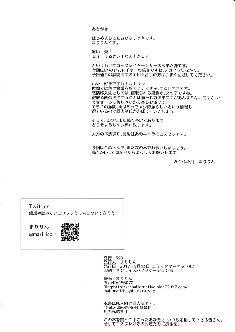 (C92) [SSB (まりりん)] 個人撮影19歳彼氏持ち後輩系巨乳レイヤー (Fate Grand Order)スポンサーリンクXコピー2024.06.09Fate Grand OrderまりりんSSBスポンサーリンク