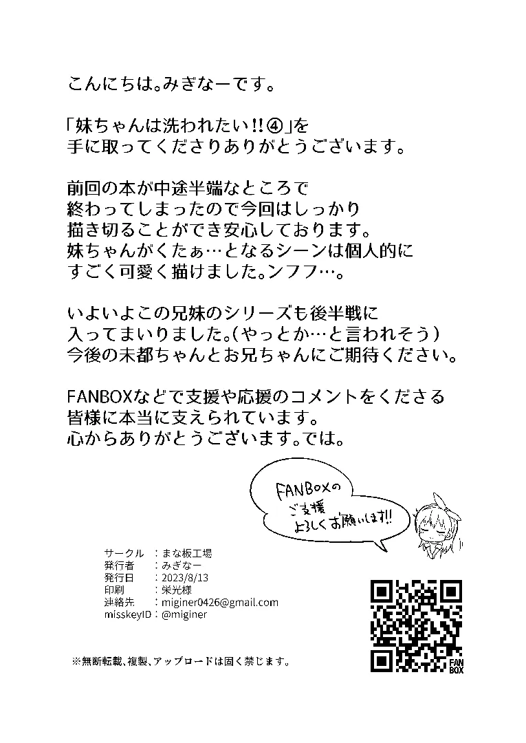(C102) [まな板工場 (みぎなー)] 妹ちゃんは洗われたい!! 4 (オリジナル) [DL版]