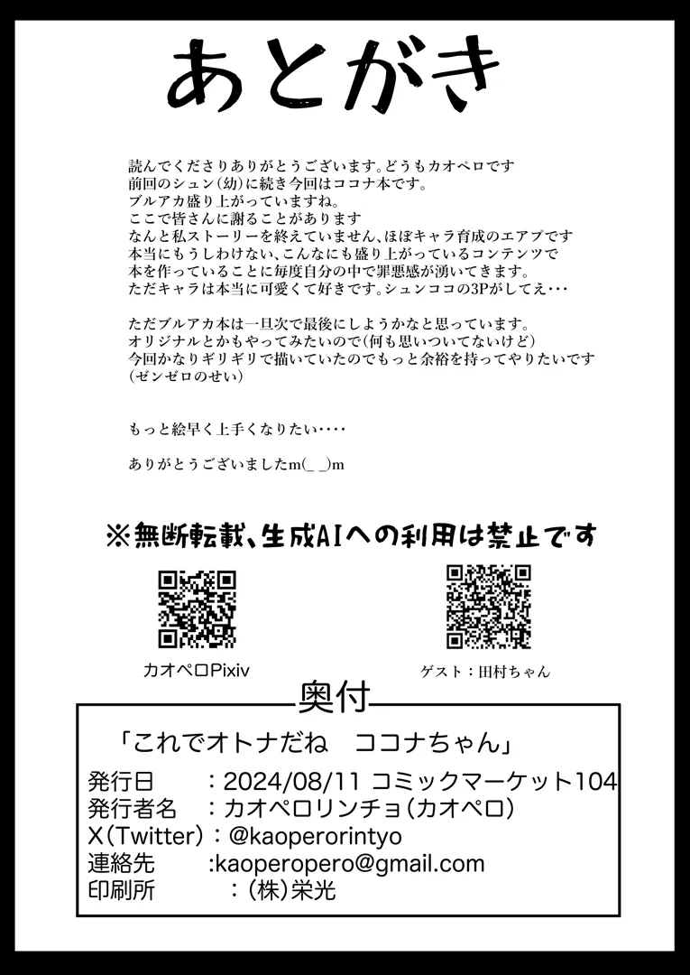 (C104) [ペロペロリンチョ (カオペロリンチョ)] これでオトナだね ココナちゃん (ブルーアーカイブ) [DL版]スポンサーリンクXコピー2024.09.06ブルーアーカイブカオペロリンチョペロペロリンチョスポンサーリンク