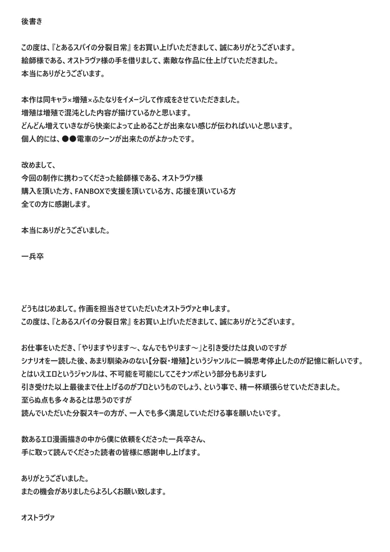 (同人誌) [一兵卒 (一兵卒、オストラヴァ)] とあるスパイの分裂日常 (オリジナル)