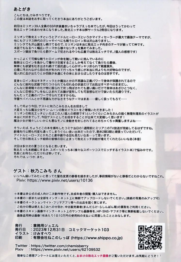 (C103) [業務用ジュエル (けみすべり)] ミリオン敗北H 詰めあわせ本 (アイドルマスター ミリオンライブ!)スポンサーリンクXコピー2024.12.02アイドルマスター ミリオンライブ!けみすべり業務用ジュエルスポンサーリンク