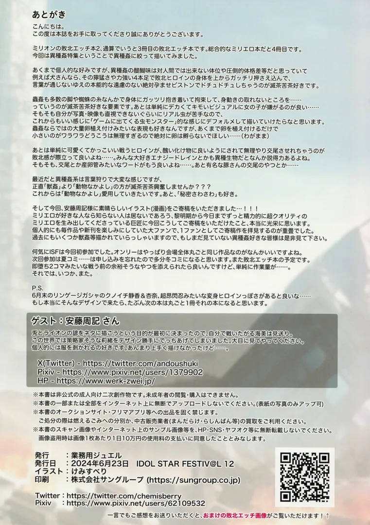 (IDOL STAR FESTIV@L 12) [業務用ジュエル (けみすべり)] ミリオン敗北H 詰めあわせ本2 異種●特集 (アイドルマスター ミリオンライブ!)スポンサーリンクXコピー2024.12.02アイドルマスター ミリオンライブ!けみすべり業務用ジュエルスポンサーリンク