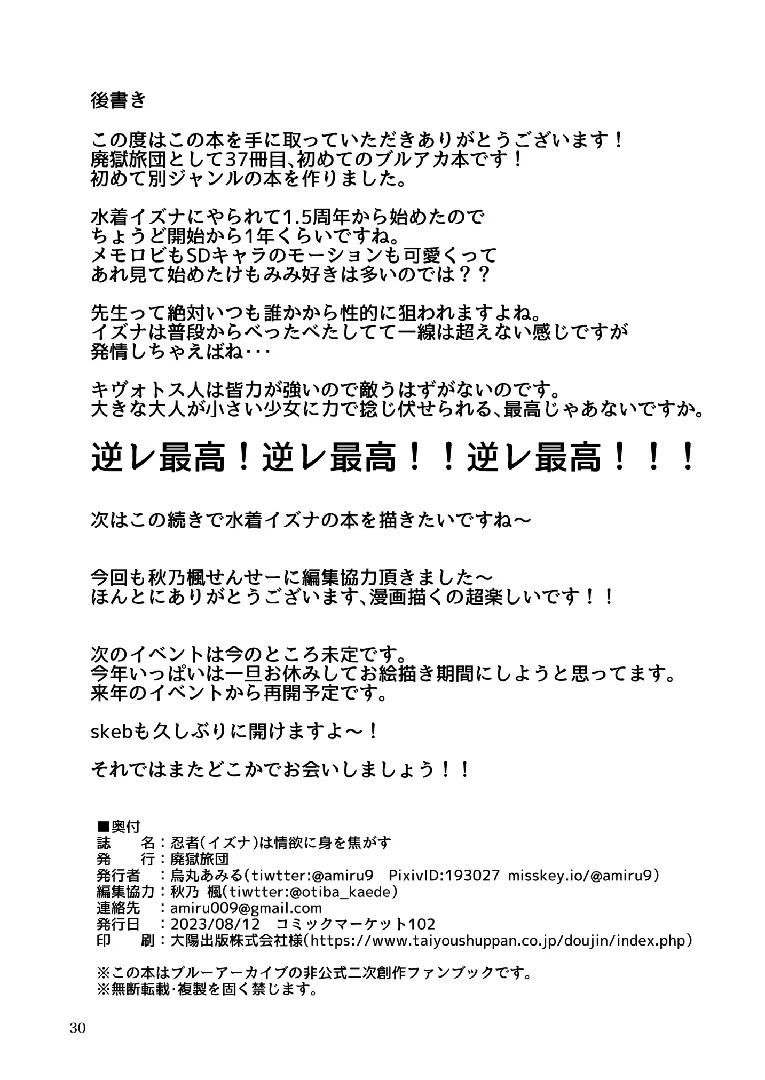 (C102) [廃獄旅団 (烏丸あみる)] 忍者は情欲に身を焦がす (ブルーアーカイブ) [DL版]