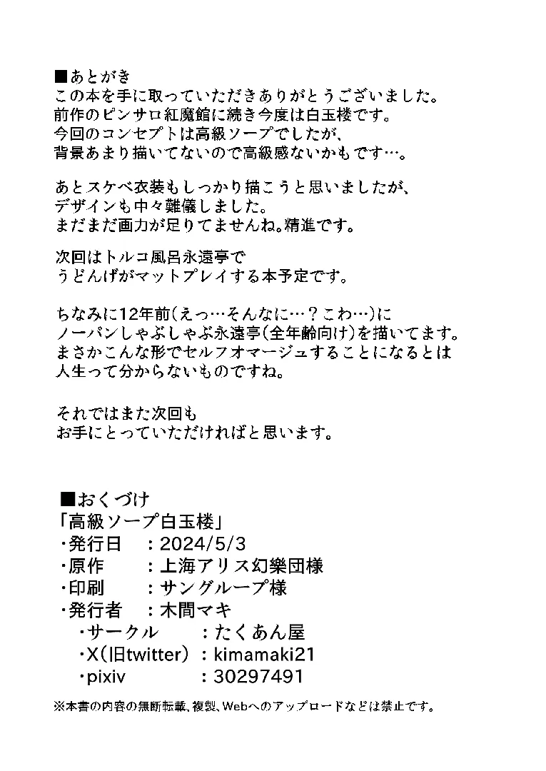 (例大祭21) [たくあん屋 (木間マキ)] 高級ソープ白玉楼 (東方Project) [DL版]