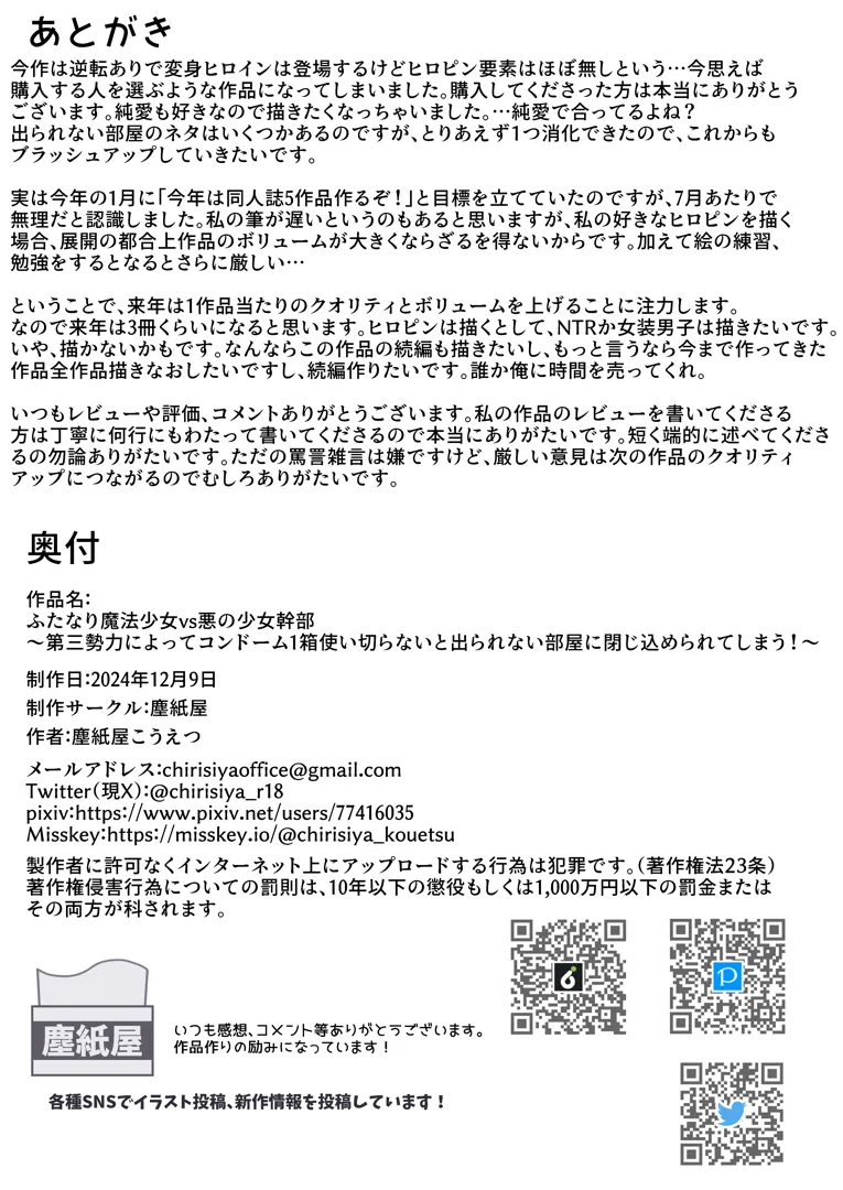 (同人誌) [塵紙屋 (塵紙屋こうえつ)] ふたなり魔法少女vs悪の少女幹部~第三勢力によってコンドーム1箱使い切らないと出られない部屋に閉じ込められてしまう!~ [DL版]スポンサーリンクXコピー2024.12.14オリジナル塵紙屋塵紙屋こうえつスポンサーリンク