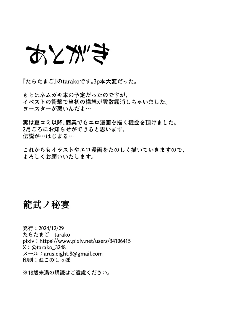 (C105) [たらたまご (tarako)] 龍武ノ秘宴 (ブルーアーカイブ) [DL版]